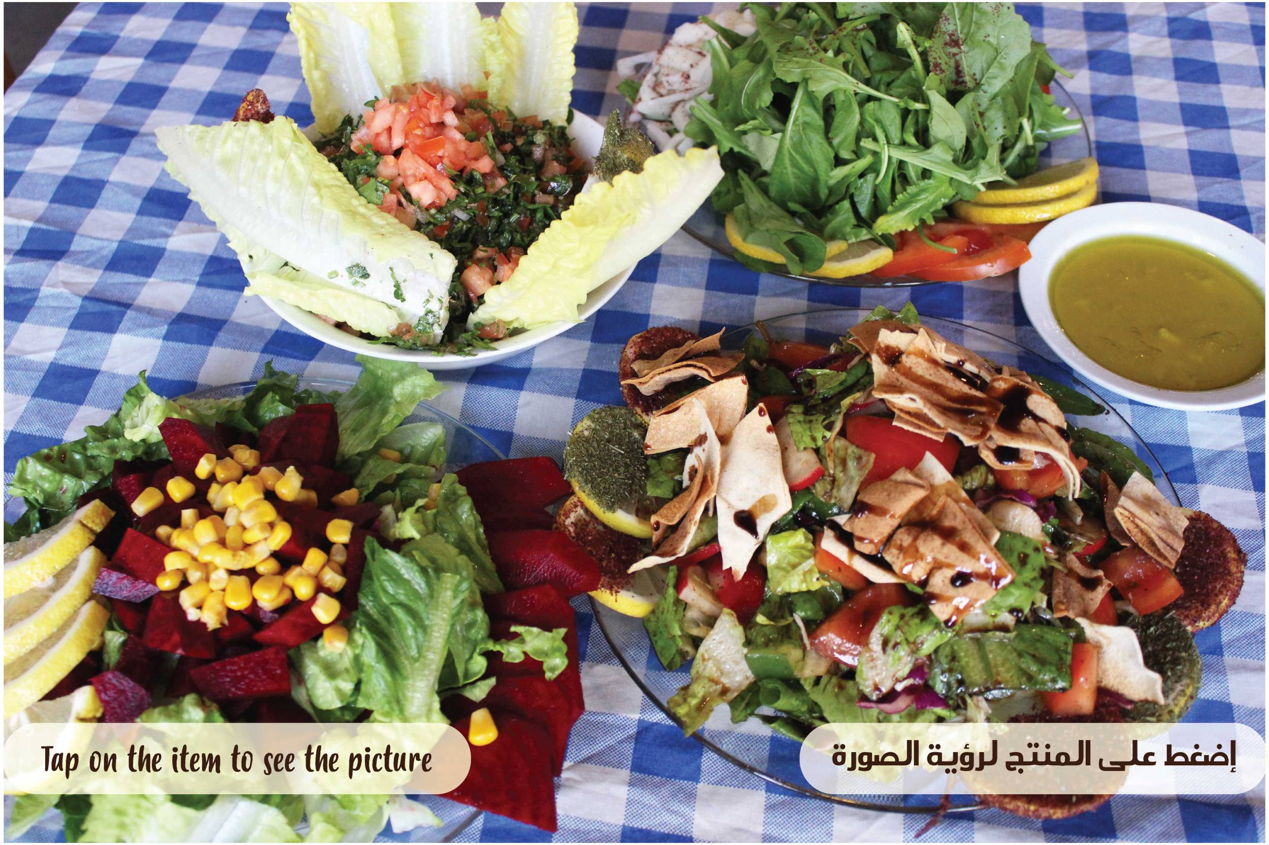salads + cold mezze + hot mezze + BBQ + dessert (fruit basket)+ drinks (soft drink)